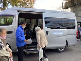 ご自宅から食事会場までの送迎を行う高齢者施設3施設の一員として、希望苑からも送迎車とドライバーを派遣しました、